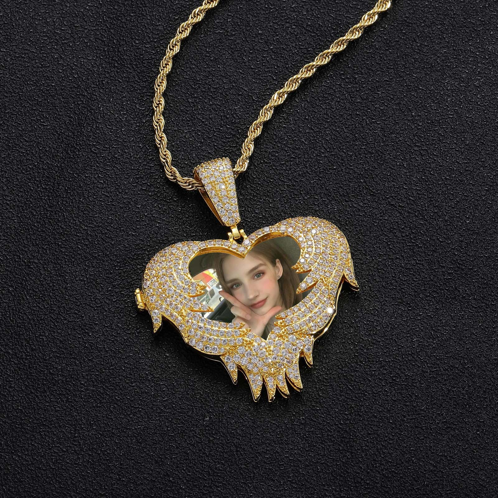 LoveShell��Custom Clamshell Heart Photo Pendant | Iced Out Zircon Necklace